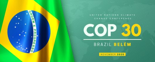By Peter Johnston | October 25, 2025 COP30 in Belém, Pará, Brazil. Annual United Nations climate change conference in November 2025. International climate summit banner with 3d realistic Brazilian flag.…